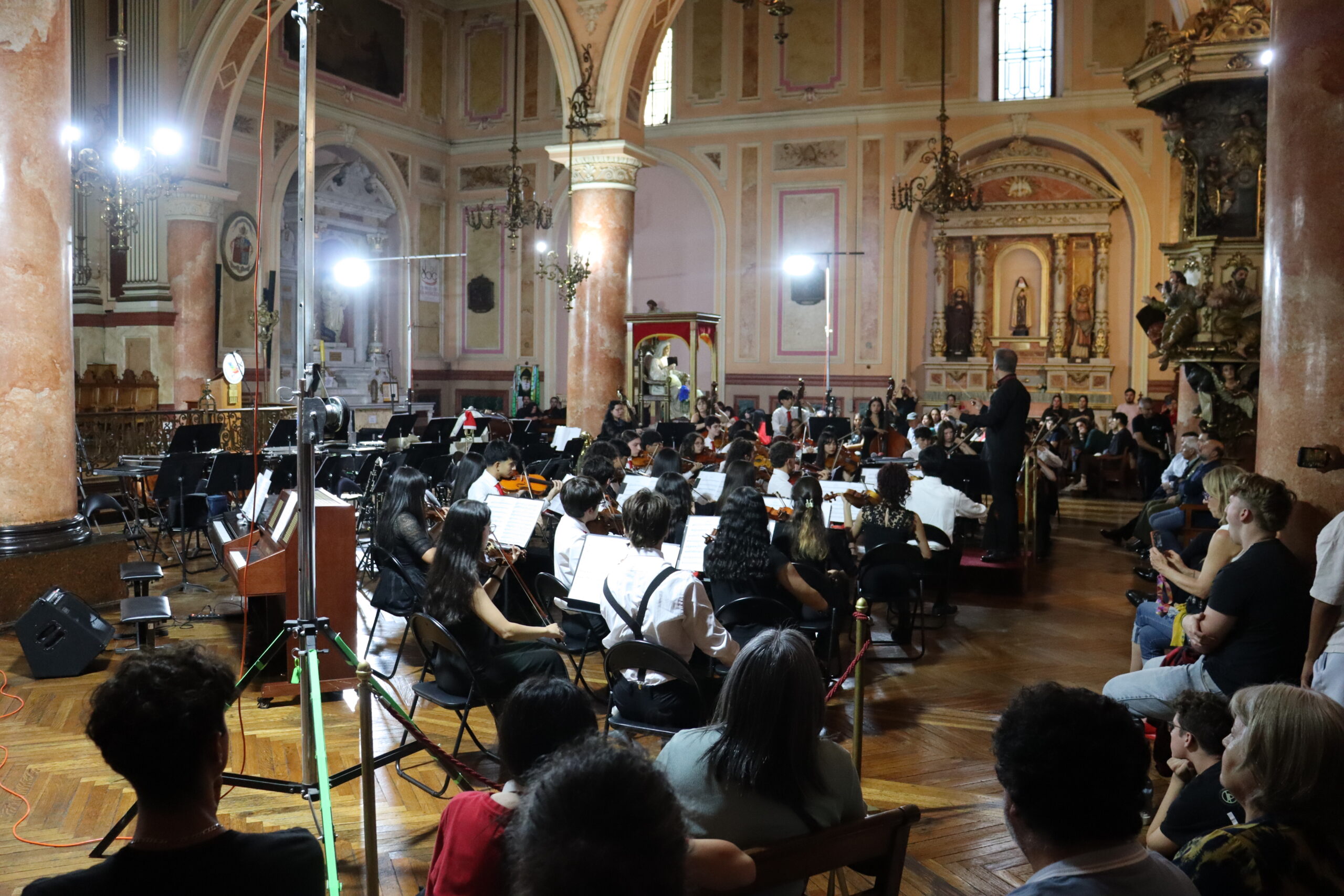 La actividad se desarrolló en la Basílica de La Merced, templo patrimonial ubicado frente a la UMC, en la esquina de las calles Mac-Iver y Merced, espacio que acogió a más de 1.500 personas, quienes disfrutaron de una jornada musical especialmente preparada para la comunidad.