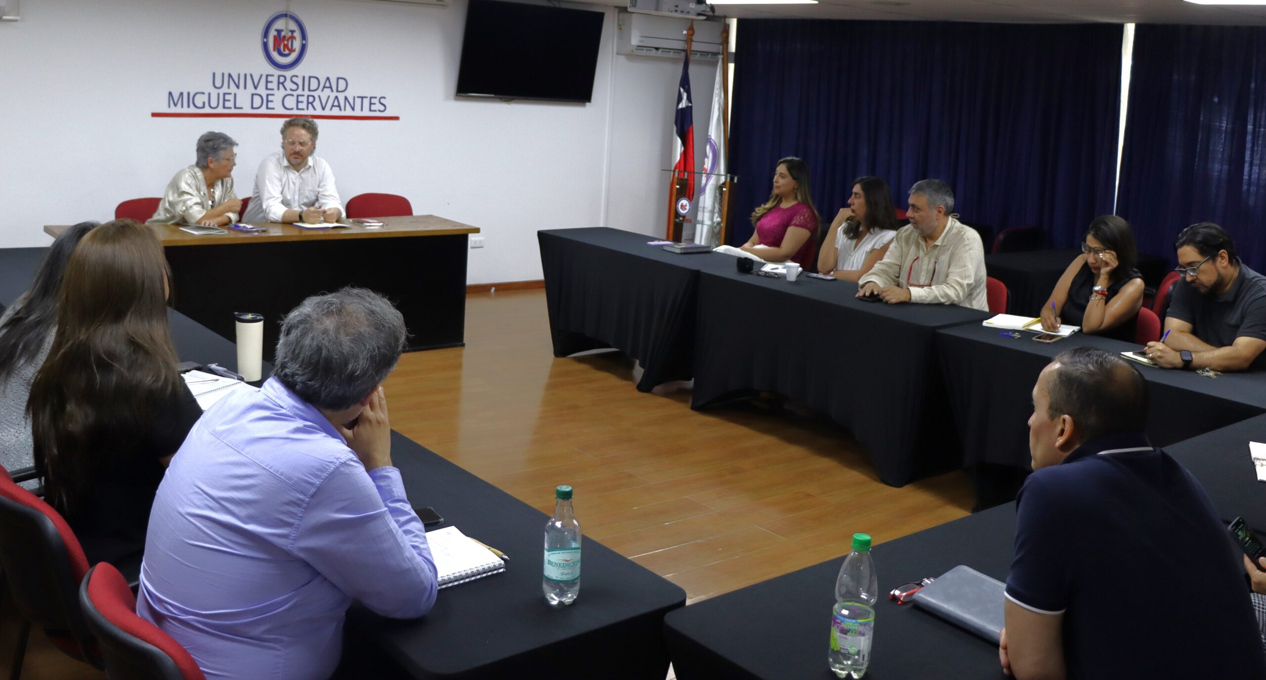 La jornada contó con la participación de la Rectora Marigen Hornkohl, junto a representantes de las Vicerrectorías y del equipo directivo de las Escuelas, quienes abordaron líneas estratégicas vinculadas a la internacionalización, el intercambio académico y la identificación de iniciativas conjuntas coherentes con una educación superior flexible, pertinente y de calidad.