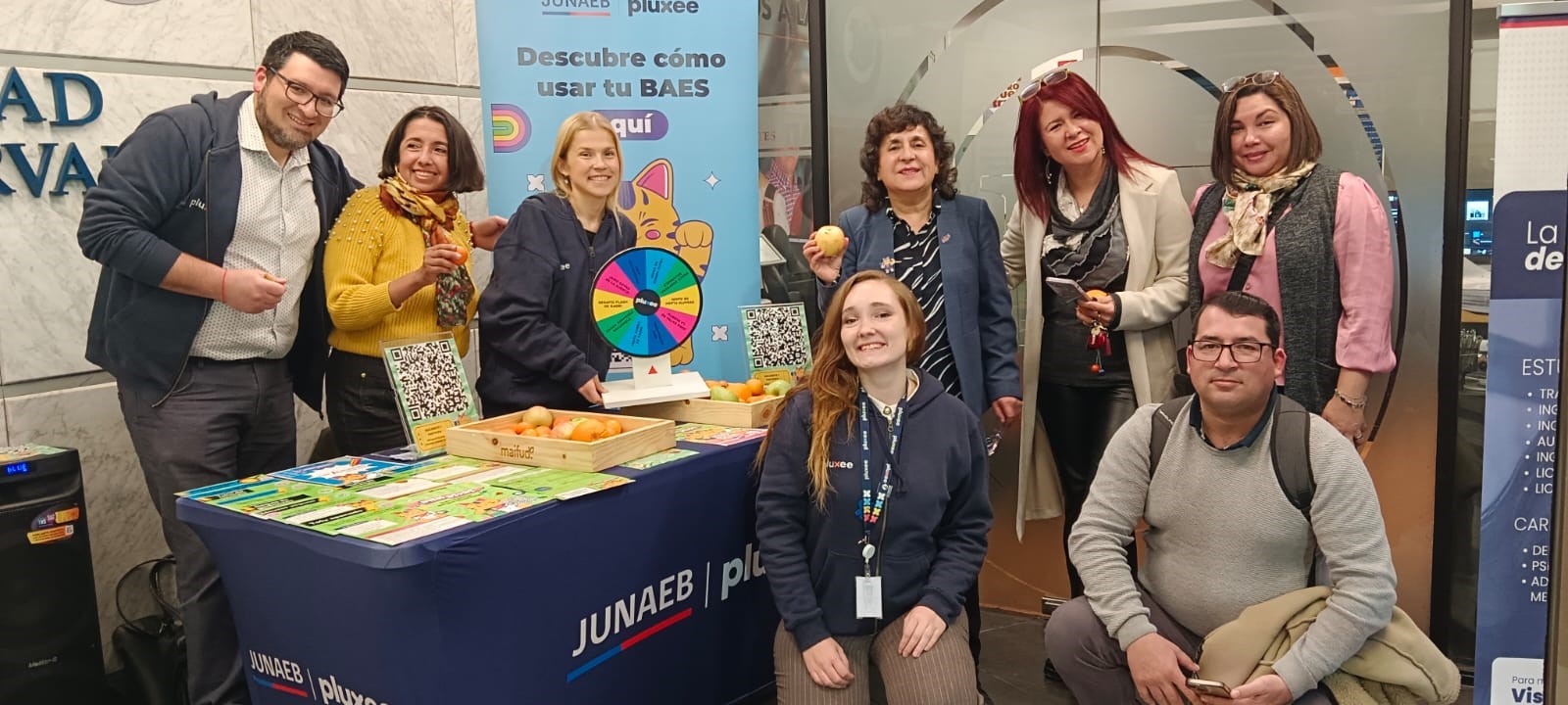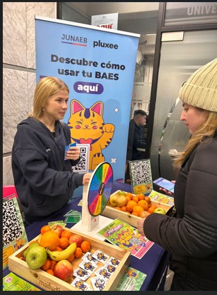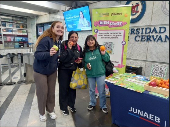 La jornada se inauguró con la presencia del stand interactivo JUNAEB Pluxee, que ofreció dinámicas lúdicas como la “ruleta de desafíos”, además de frutas, recetarios e información nutricional. Entre los inscritos se sortearon premios, resultando ganadoras las estudiantes Valery Bravo y Andrea Monje, junto a la Coordinadora de la Escuela de Psicología, Luisa Mejías.