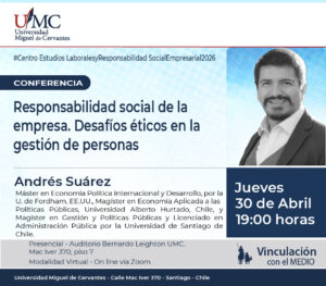Como parte de este trabajo, CELARES desarrollará la conferencia “Responsabilidad social de la empresa: desafíos éticos en la gestión de personas”, que contará con la exposición de Andrés Suárez, Máster en Economía Política Internacional y Desarrollo por la Universidad de Fordham, Estados Unidos.